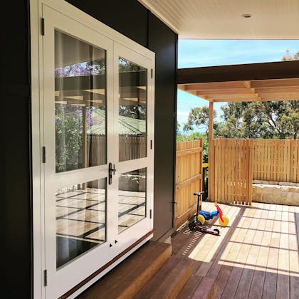 The Golden Ratio team took on this architectural building project to create a new entertaining area including blackbutt decking, pergola, privacy fencing and an intergrated stereo and lighting system. The team also produced a new front room extension including Australian hardwood timber floors and new timber casement windows and french doors to match the existing building. Other works included a roof replacement, new fascias throughout and complete overhauling of the existing plumbing system. Our 'hands on' experience helped the client and architect during the design phase with certain aspects of this build to minimise costs and maximise the end result.