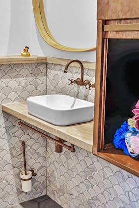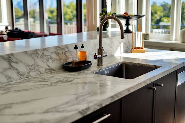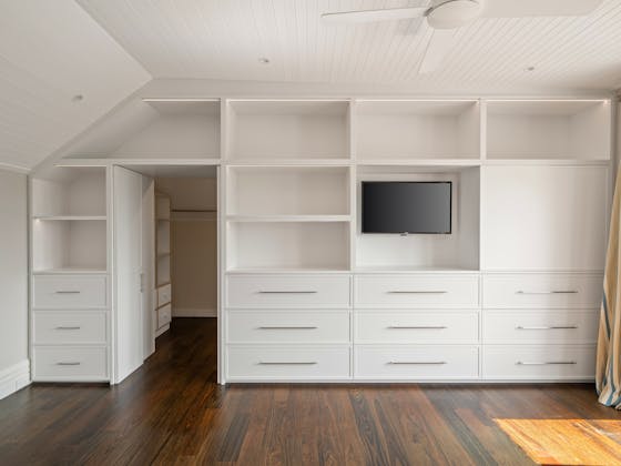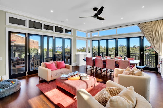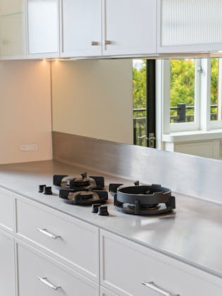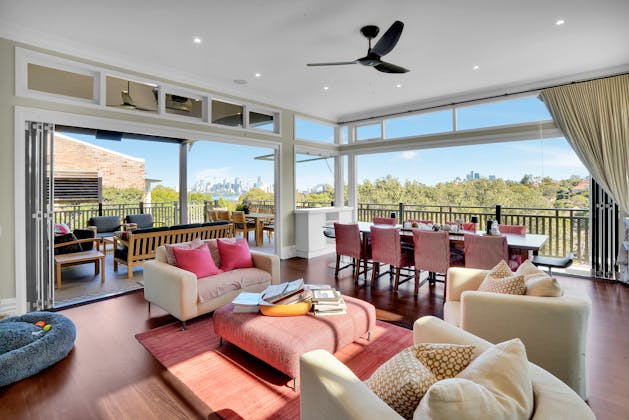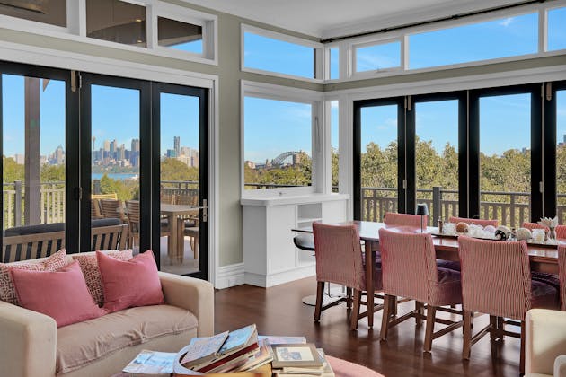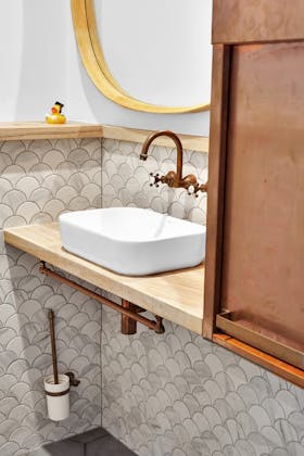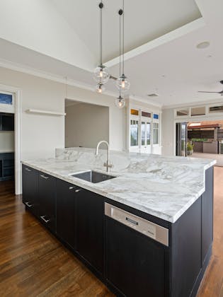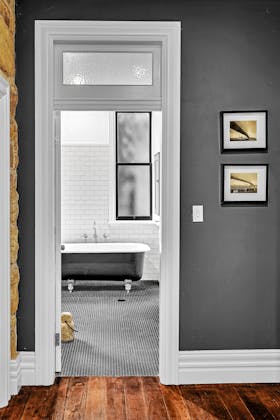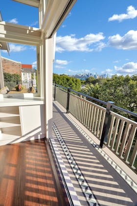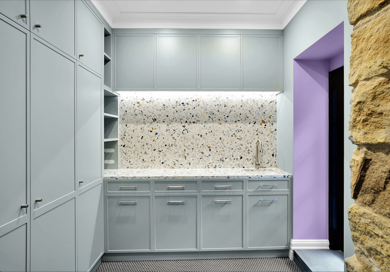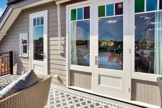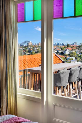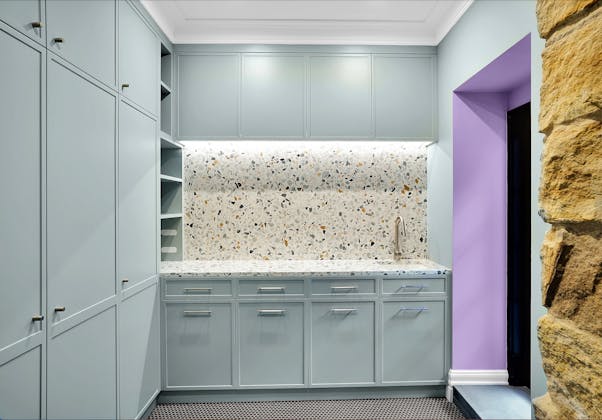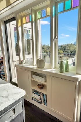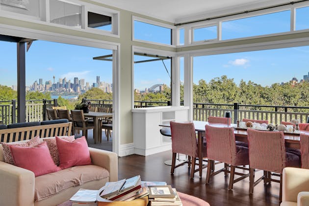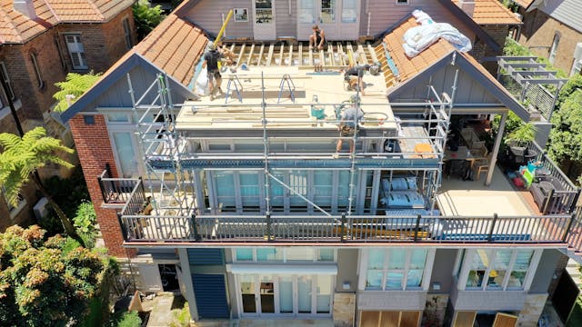 'HADLEIGH' a c1908 heritage home in Mosman. This project entailed the restoring of original heritage components such as ornate timber trims, flooring and plaster work. We replaced the kitchen, butler's pantry, laundry, bathrooms, bedroom joinery, over 120m2 of tesselated tile balconies, powdercoated aluminium balustrades, tile and copper roofing and guttering, custom stained glass timber windows and doors throughout and created some new entertaining zones, like our favourite - the rustic recycled timber barbecue area and a one-of-a-kind sandstone firepit. We also dealt with damp issues by installing extensive sub floor drainage and ventilation. The project was finished off with some structural landscaping components, along with horticultural design and implementation.